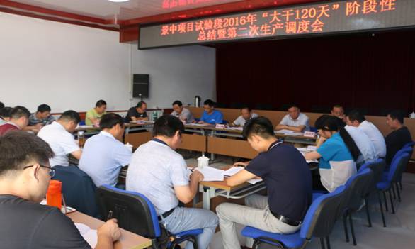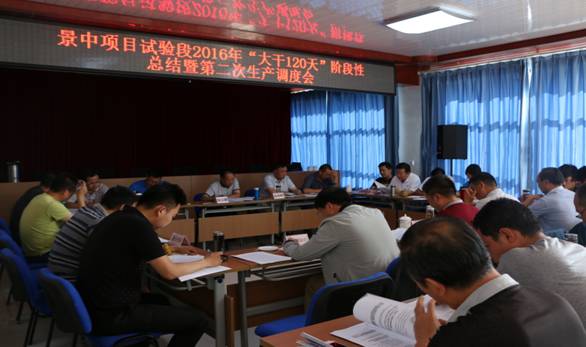 2016年7月22日上午,景中高速公路建设项目在项目办召开试验段2016年“树样板、建品质工程、大干120天”阶段性总结暨第二次生产调度会。景中项目办全体工作人员、各参建单位主要负责人和有关人员参加了会议。